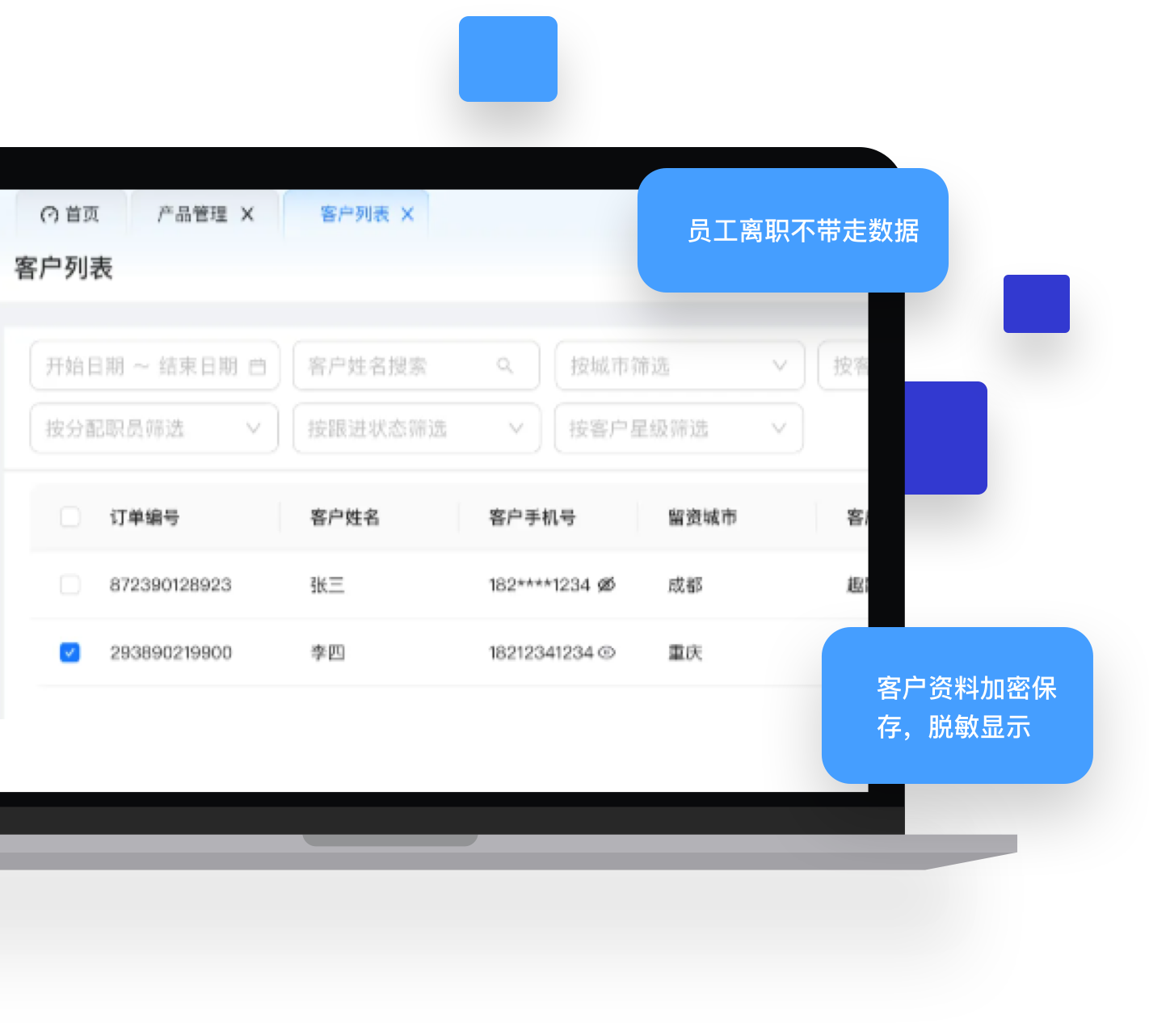 客户资料安全储存,不丢失,不公开,不交又查阅;客户资料一键打包,规范递件。